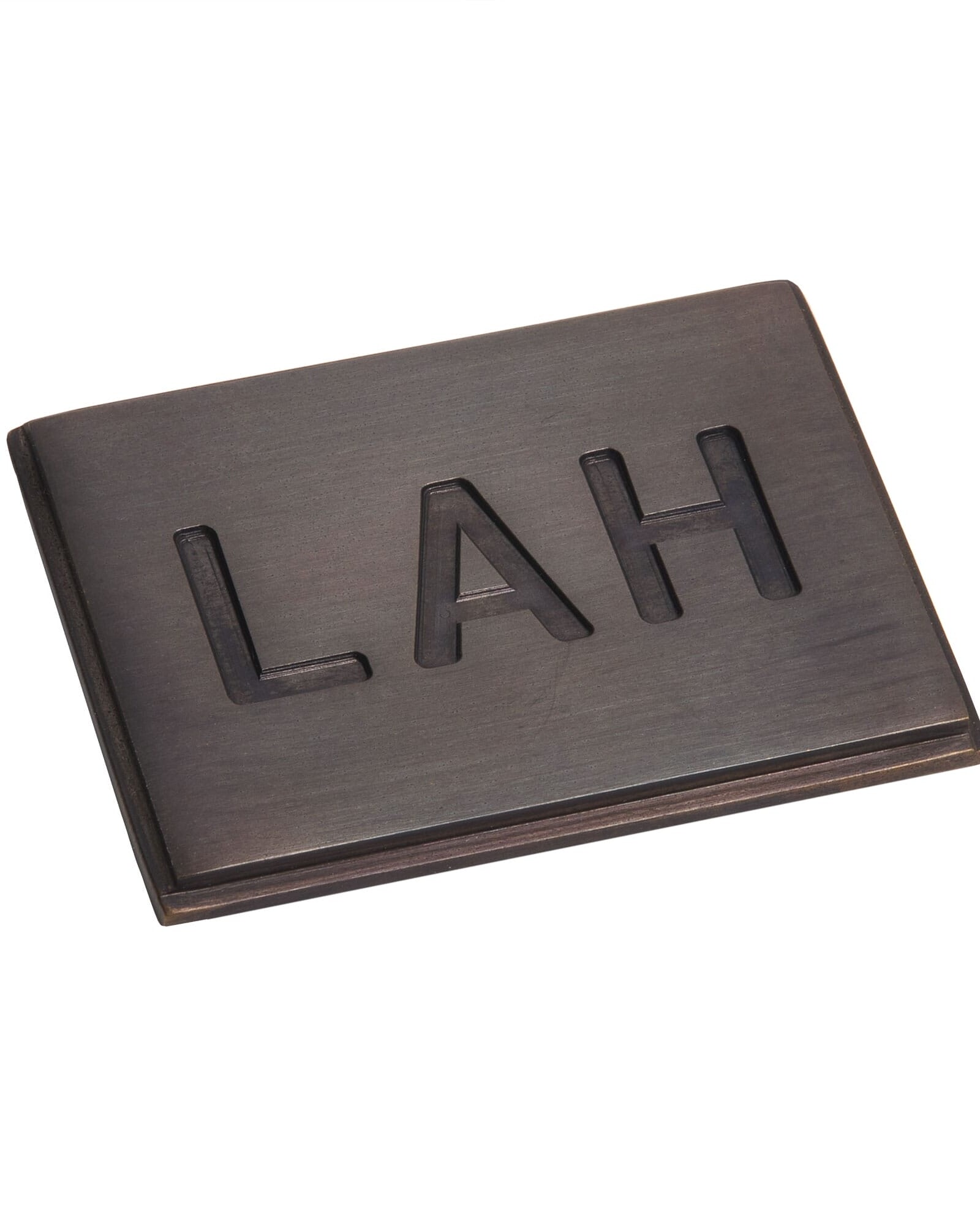 A matt living finish, applied over brass for an intense rustic black bronze appearance. Finished with an application of beeswax or Lacquered.