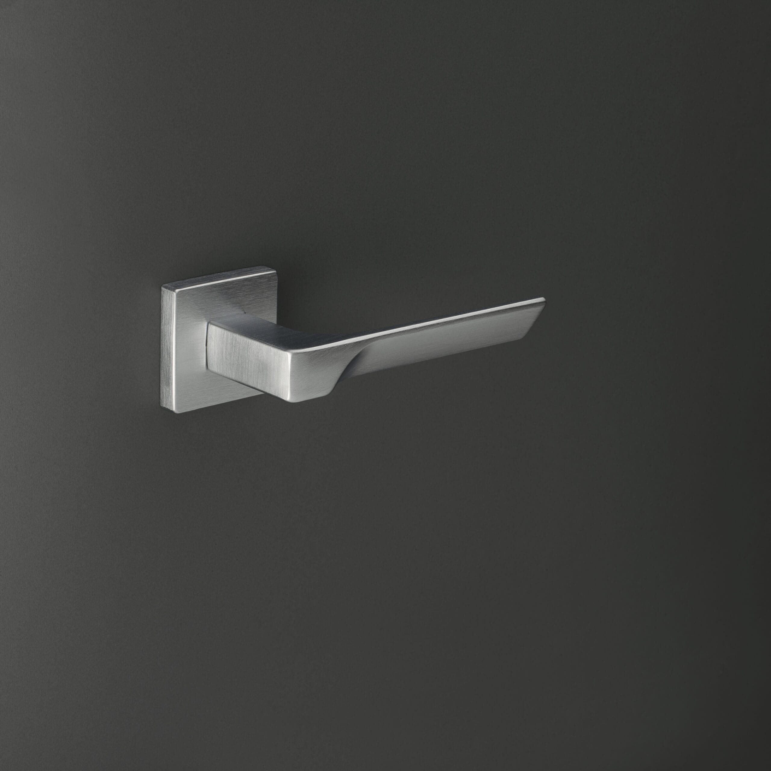 With an elegant and minimal design, this handle is characterized by its slender and inclined grip. The front features a delicate recess that adds charm and dynamism through a refined play of light and shadow.