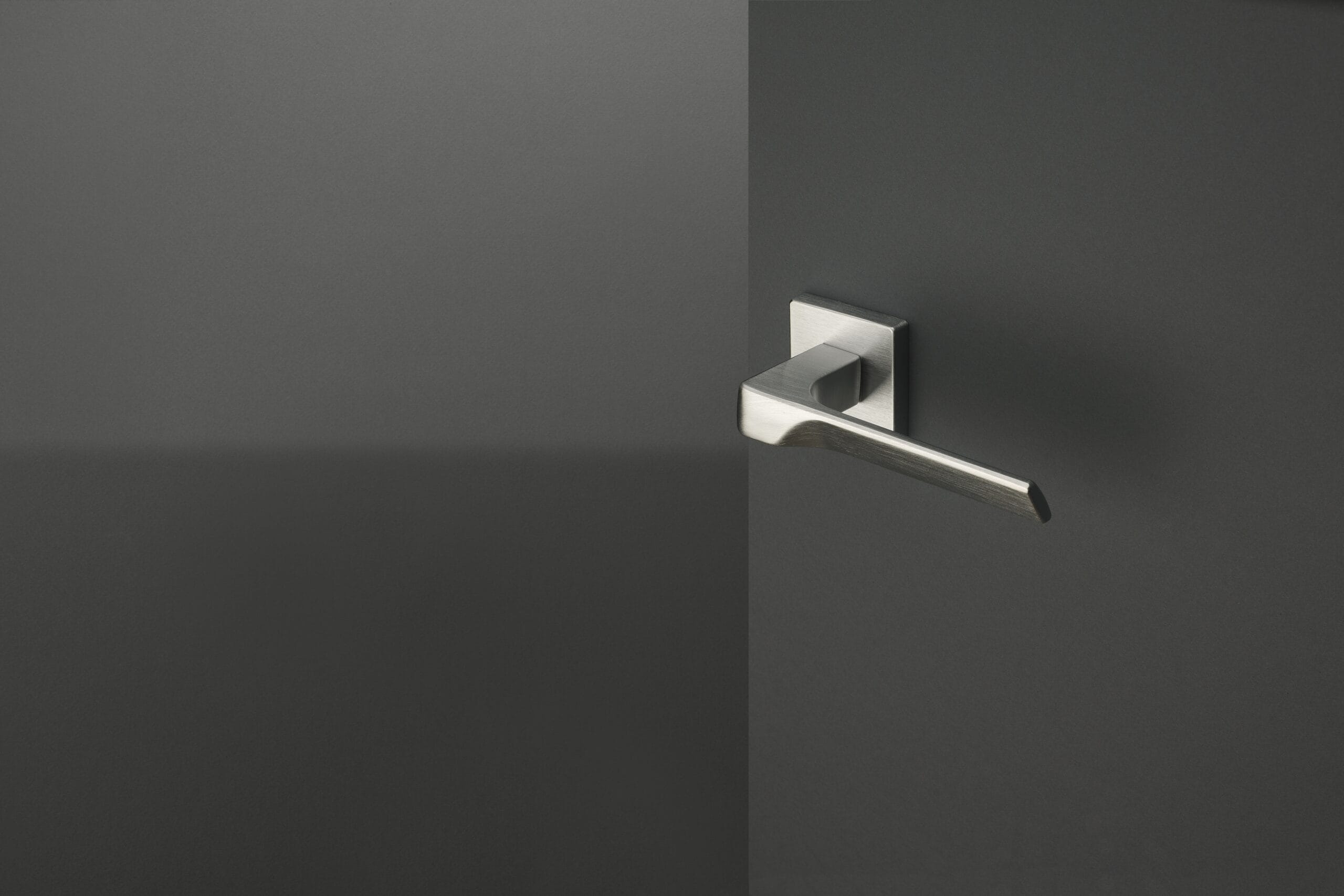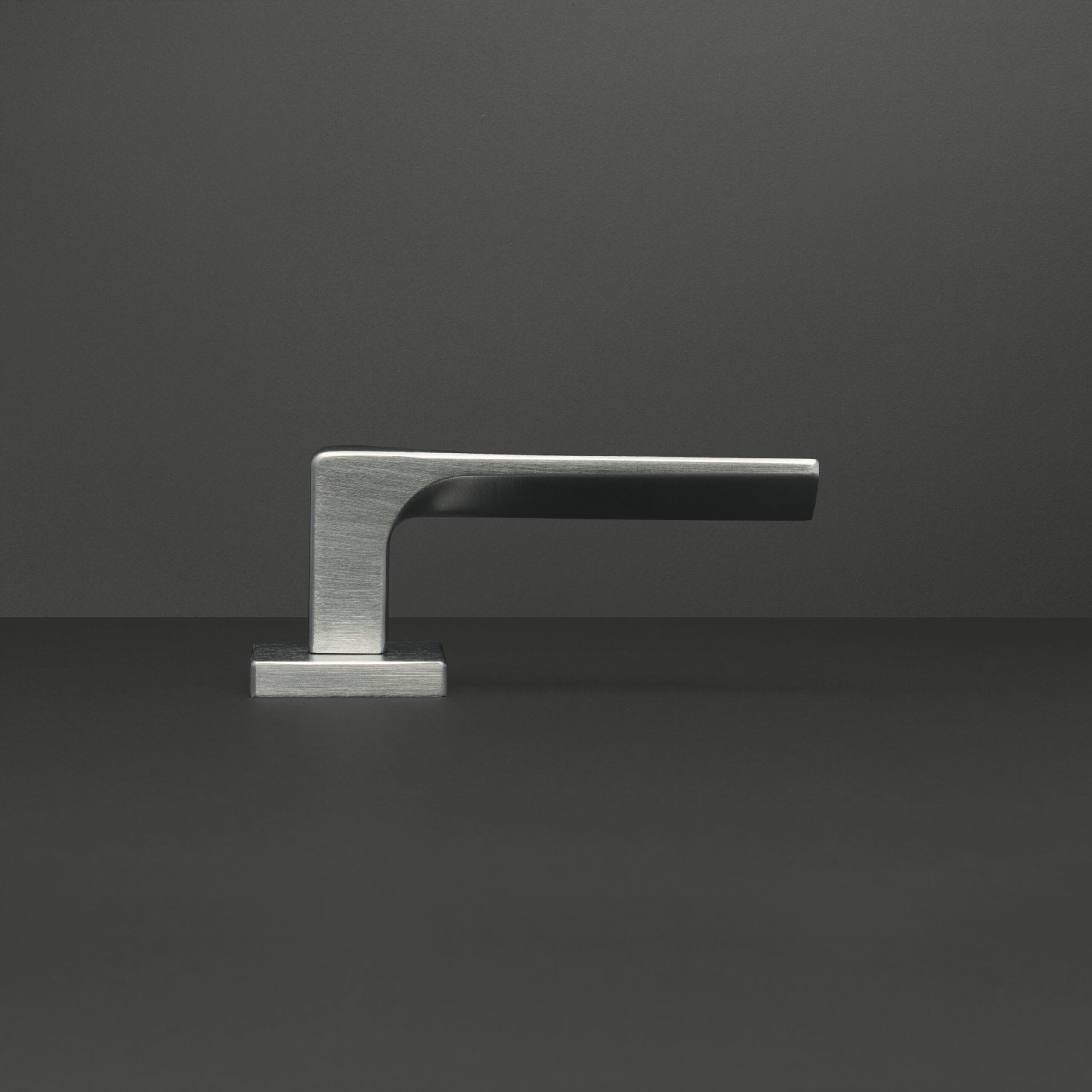 With an elegant and minimal design, this handle is characterized by its slender and inclined grip. The front features a delicate recess that adds charm and dynamism through a refined play of light and shadow.
