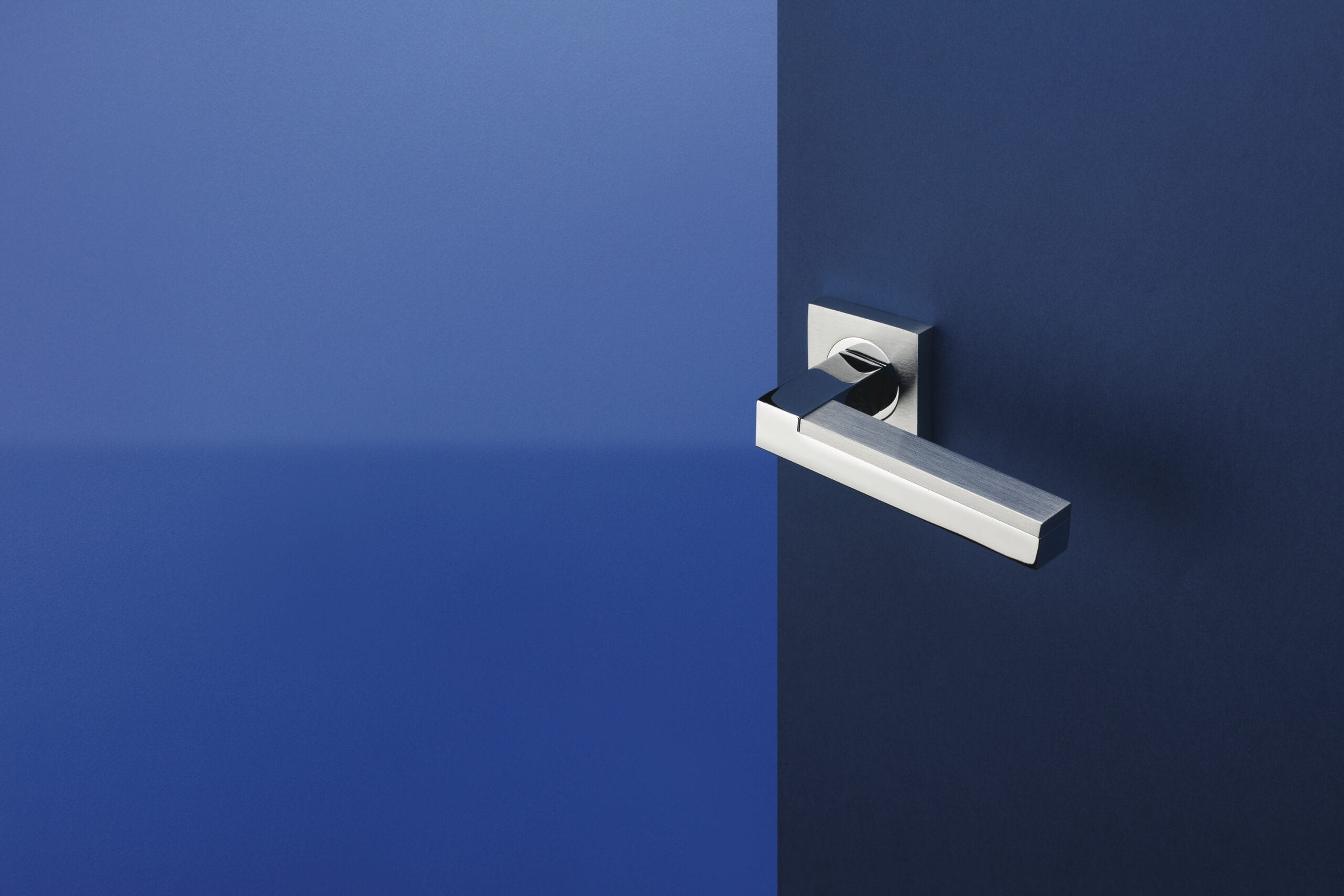 Handle with a squared, essential and impactful design. A combination of basic geometries that skillfully combines materials and shapes, creating a play of proportions and reflection.