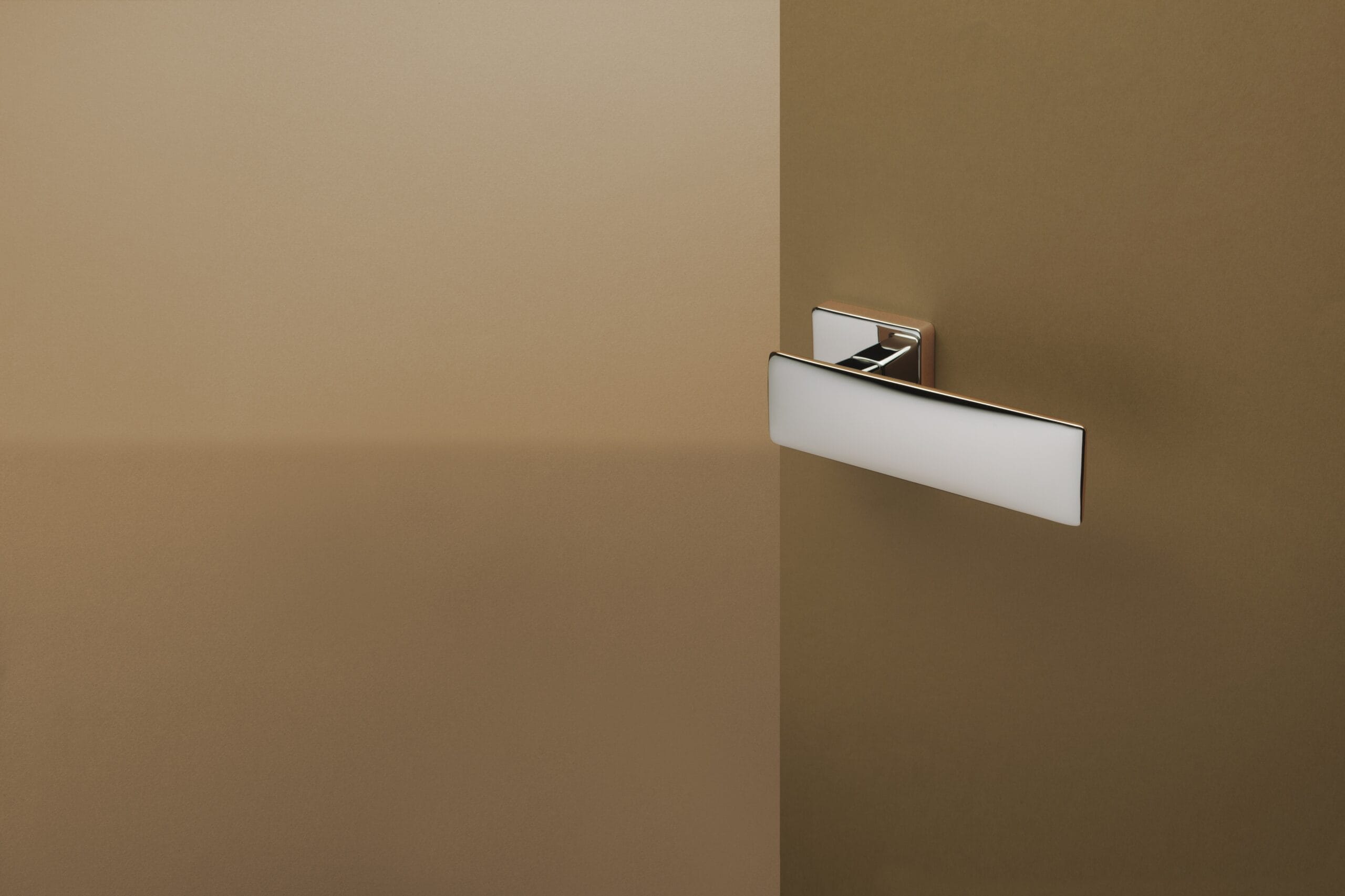 The Spring handle is elegant and refined, linear and clean, the result of the overlapping between the square of the rosette and the rectangle of the handle, softened by the rounded corners and a slight curvature on the front.